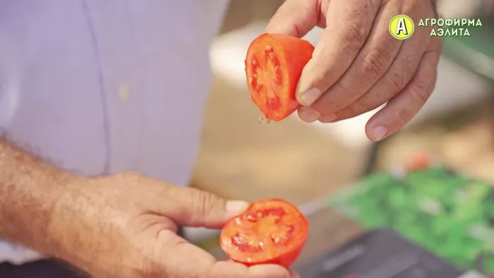 Мякоть в зрелом состоянии мясистая и сочная, с гармоничным балансом сахаров и кислот. Наличие выраженной, приятной кислинки – отличительная черта сорта, которая высоко ценится в свежих салатах и особенно в переработке. Эта кислинка сохраняется в маринадах и соусах, придавая им традиционный «томатный» вкус, в отличие от некоторых современных сладких сортов.