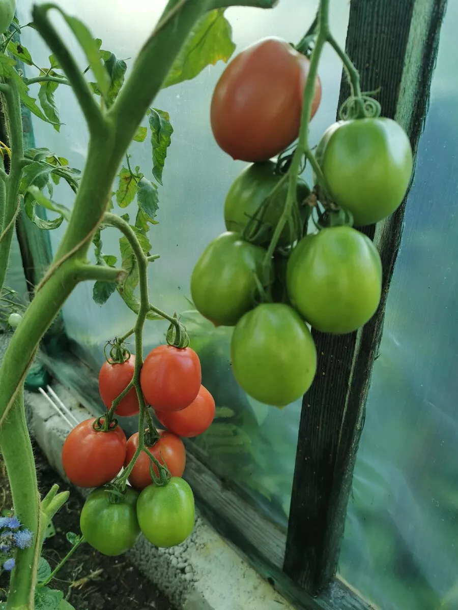 - Подвязка стеблей и особенно тяжелых кистей к опорам обязательна. Несмотря на среднерослость, под весом многочисленных плодов, масса которых может достигать 100-125 граммов, куст склонен к полеганию, что повышает риск заболеваний.