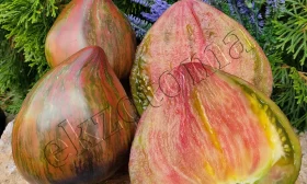 Плоды обладают экстравагантной сердцевидной формой, которая редко бывает идеально симметричной. Часто они имеют ярко выраженный вытянутый «носик» и заметную ребристость в области плодоножки, что придает им индивидуальность и узнаваемый шарм. Размер, как правило, крупный, но сильно зависит от агротехники: при нормировании количества завязей можно получить плоды-гиганты.