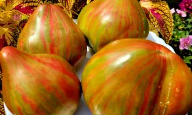 - Срывайте плоды крайне аккуратно, поддерживая их рукой. Экстравагантная сердцевидная форма может делать их менее удобными для срывания, чем округлые томаты. Отделять плод лучше с плодоножкой, аккуратно надавливая на ее основание и поворачивая, либо с помощью секатора. Это предотвращает повреждение кожицы и плодовой кисти.