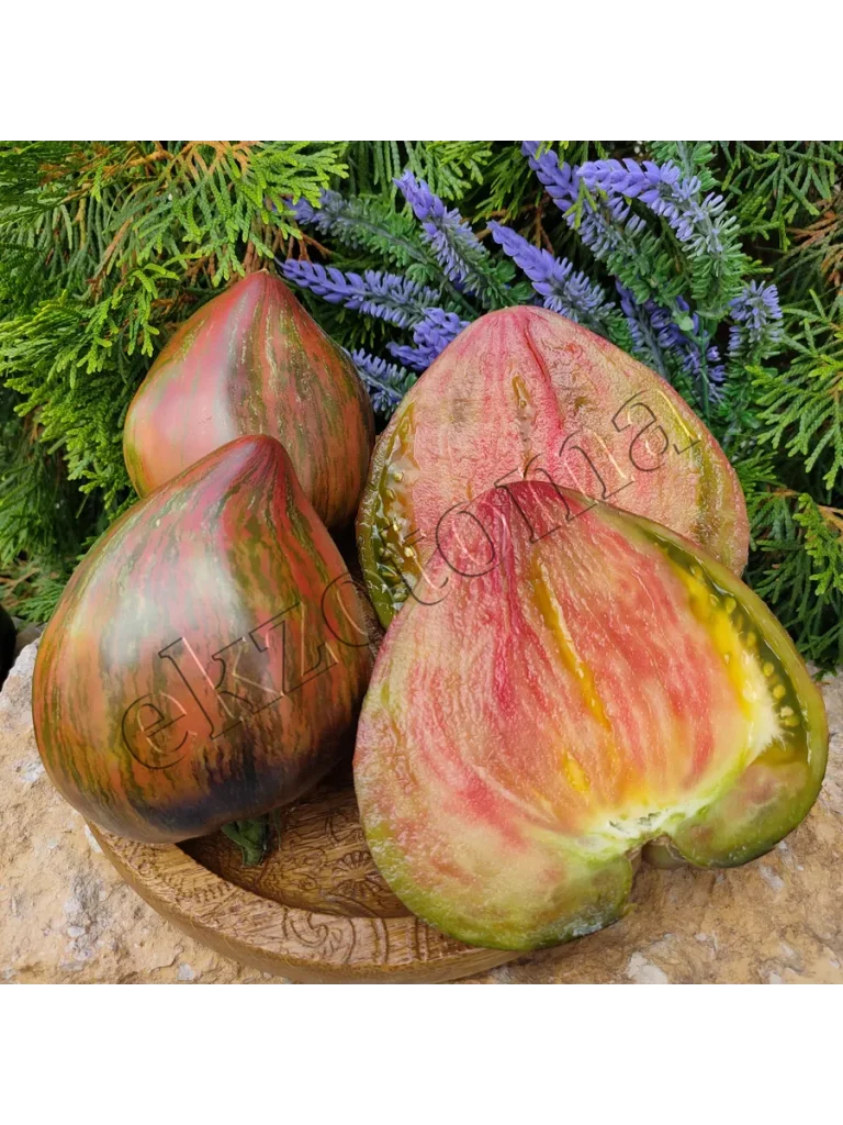 Плоды обладают экстравагантной сердцевидной формой, которая редко бывает идеально симметричной. Часто они имеют ярко выраженный вытянутый «носик» и заметную ребристость в области плодоножки, что придает им индивидуальность и узнаваемый шарм. Размер, как правило, крупный, но сильно зависит от агротехники: при нормировании количества завязей можно получить плоды-гиганты.