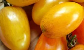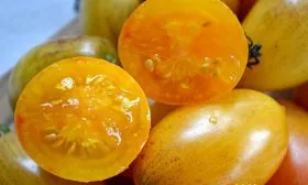 - Употребление в свежем виде. Здесь в полной мере раскрывается декоративная и вкусовая составляющая. Желтые плоды с красным румянцем и темными плечиками эффектно смотрятся в нарезке и салатах. Сладкий, почти детский вкус делает их любимым лакомством прямо с куста, а небольшое количество семян в мякоти повышает ее гастрономическую ценность.