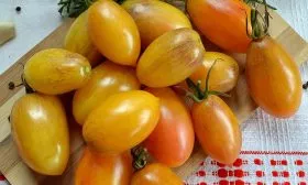 - Цельноплодное консервирование. Удлиненная «сливка» с прочной кожицей и массой 25-70 граммов — идеальный формат для маринования и засолки. Плоды компактно укладываются в банку, равномерно пропитываются рассолом и практически не деформируются. Их плотная структура гарантирует, что в готовой консервации вы получите аккуратные, упругие томаты.