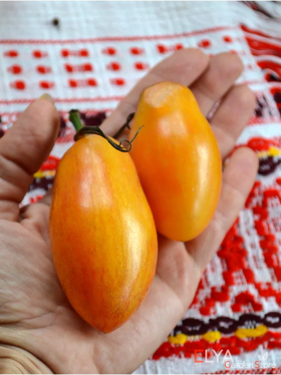 Главная отличительная черта сорта — его плоды. Их форма точно соответствует описанию «сливка с остреньким аккуратным носиком». Плоды удлиненные, очень плотные, с толстыми стенками, что является ключевым признаком для сортов, идеально подходящих для вяления и цельноплодного консервирования. Именно эта вытянутая форма и дала сорту первую часть названия «Бананово».