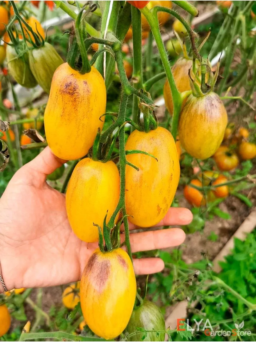 Поскольку интенсивность и рисунок румянца зависят от освещения, каждый томат на кисти получается уникальным, что делает урожай особенно живописным.