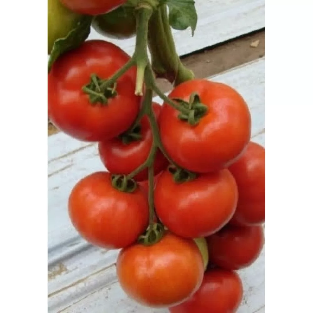 Гибрид формирует плоды, которые можно назвать эталоном товарного вида для ранних тепличных томатов. Их форма преимущественно округлая, с высокой степенью выравненности в пределах одной кисти, что особенно ценится при коммерческом выращивании. Небольшая приплюснутость наблюдается лишь в области крепления к плодоножке.