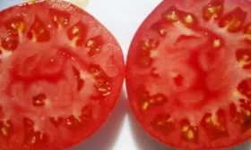 Мякоть очень мясистая, плотная и многокамерная, с небольшим количеством семян. Такая структура обусловливает универсальность применения. Вкус описывается как классический помидорный, с гармоничным, идеальным сочетанием сладости и кислинки, что высоко ценится для употребления в свежем виде.