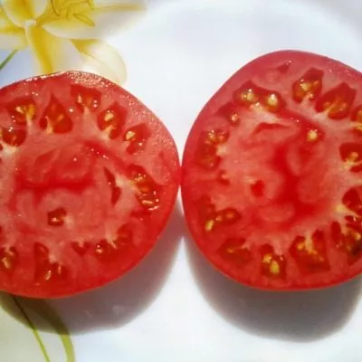 Мякоть очень мясистая, плотная и многокамерная, с небольшим количеством семян. Такая структура обусловливает универсальность применения. Вкус описывается как классический помидорный, с гармоничным, идеальным сочетанием сладости и кислинки, что высоко ценится для употребления в свежем виде.