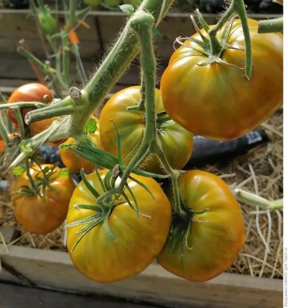 Такой окрас — результат сложного сочетания пигментов в кожице и мякоти. Он может варьироваться от плода к плоду даже в одной кисти, что делает каждый томат уникальным.