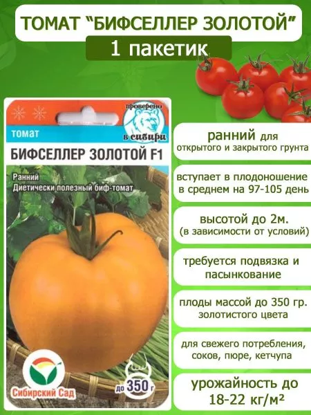 Появление гибрида удовлетворяет растущий спрос на томаты с повышенным содержанием каротиноидов, которые ценятся не только за яркий цвет, но и за потенциальную пользу. Бифселлер золотой занимает четкую нишу: это не классический красный бифштексный томат и не мелкоплодный коктейльный сорт. Его оранжевые плоды массой около 350 граммов позиционируются как премиальный продукт.