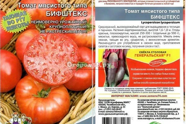 Сорт Бифштекс выведен российскими селекционерами и является ярким представителем биф-томатов, которые отличаются от обычных помидор очень крупными, сладкими и мясистыми плодами с зернистой мякотью.