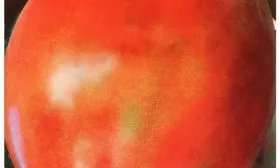 Окраска зрелого плода — равномерная, насыщенно-красная без зеленого пятна у плодоножки. Важный нюанс для определения спелости: у биф-томатов из-за толщины мякоти внешний красный цвет может появиться раньше, чем полностью созреют внутренние стенки. Полную вкусовую зрелость часто выдает небольшое размягчение плода у плодоножки.
