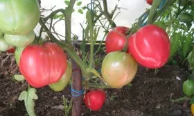 Стебель у сорта толстый и крепкий, однако его прочности недостаточно, чтобы удерживать крупные плоды, масса которых может достигать 600 граммов. Под их тяжестью ветви могут надламываться в месте крепления к стволу. Поэтому установка прочной опоры и подвязка не просто рекомендуются, а являются обязательным агротехническим приемом. Подвязывать начинают еще молодую рассаду, а по мере роста фиксируют и каждую тяжелую кисть.