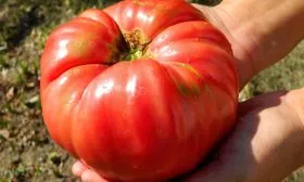 | Форма плода | Плоскоокруглая с ребристостью | Выраженная ребристость и долности – признак крупноплодных, мясистых томатов. Такая форма характерна для многих биф-томатов (с мякотью как стейк). |