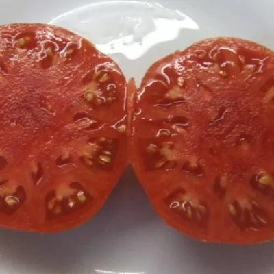 Мякоть обладает исключительной плотностью и сахаристостью на изломе. Она многокамерная, но при этом содержит мало семян и свободного сока. Такая мясистая, «бифштексная» структура (от англ. «beef» — говядина) напрямую определяет универсальность использования. Плоды отлично держат форму при нарезке в салаты и идеально подходят для переработки на густые пасты, соусы или кетчуп, так как дают высокий выход мякоти.