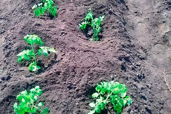 - Саженцы помещают в лунки вертикально. Если они сильно вытянулись, немного под углом, так, чтобы часть стебля была заглублена. Но, перед посадкой нужно обязательно удалить все листья на части стебля, который окажется под землёй.
