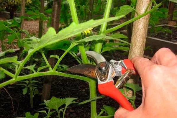 Регулярно удаляйте боковые побеги – примерно раз в 7-10 дней, когда они достигают длины 5-7 см. Для наилучшего результата проводите мероприятие утром, чтобы раны быстрее заживали. Аккуратно выламывайте или обрезайте пасынки острым ножом, оставляя небольшой пенёк (1-2 см).