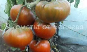 Окраска является визитной карточкой. В полной биологической спелости основной фон становится глубоким коричнево-бордовым, близким к шоколадному. На этом фоне, особенно у плечиков (область вокруг плодоножки), остаются контрастные зеленые или оливковые штрихи и разводы. Эта мраморность — не признак незрелости, а генетическая особенность, указывающая на высокое содержание антоцианов (природных пигментов).