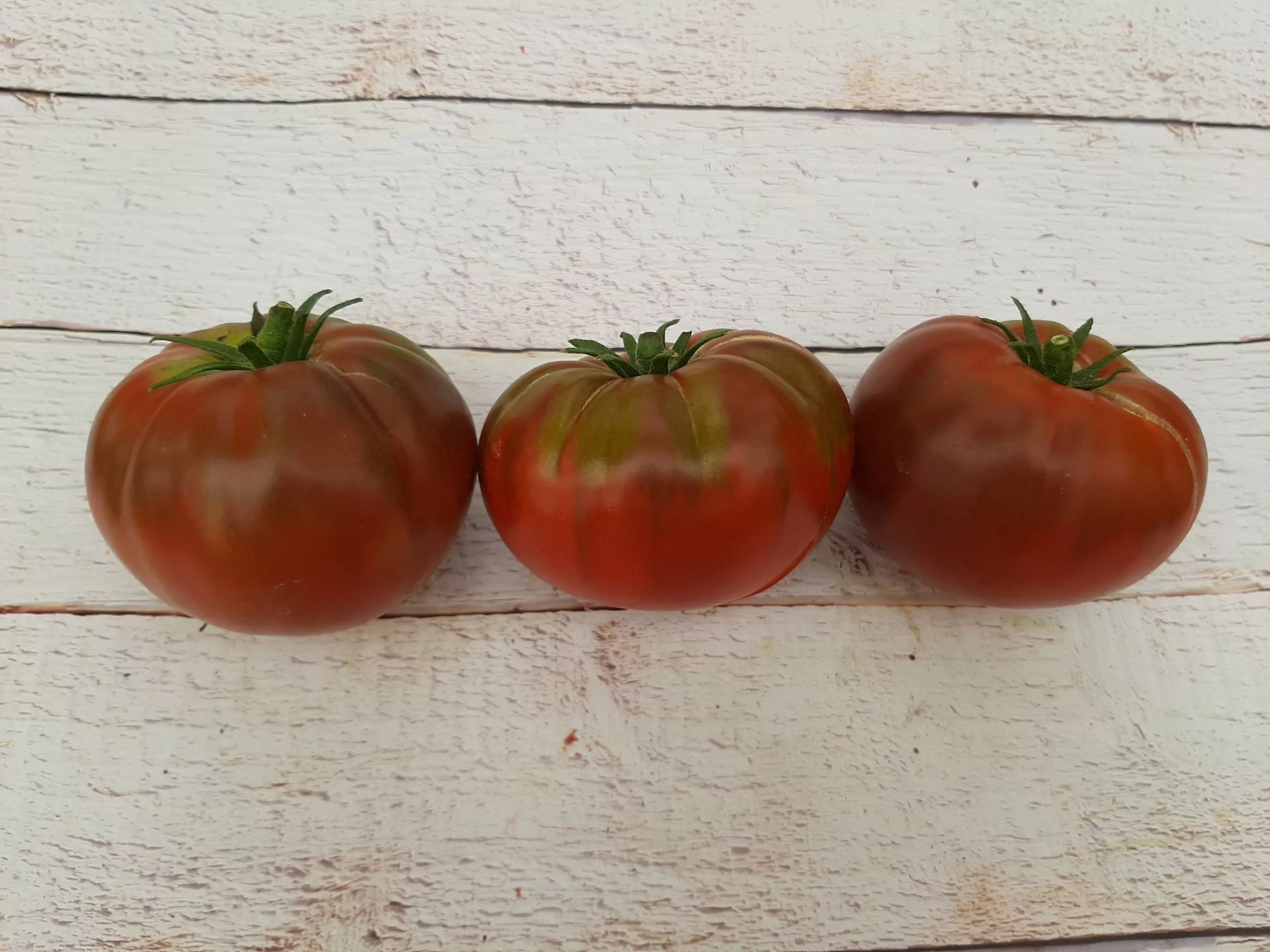 Окраска является визитной карточкой. В полной биологической спелости основной фон становится глубоким коричнево-бордовым, близким к шоколадному. На этом фоне, особенно у плечиков (область вокруг плодоножки), остаются контрастные зеленые или оливковые штрихи и разводы. Эта мраморность — не признак незрелости, а генетическая особенность, указывающая на высокое содержание антоцианов (природных пигментов).