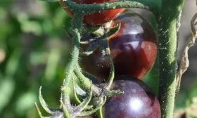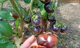 | Эксклюзивная окраска плодов благодаря антоцианам. | Обязательная подвязка и регулярное пасынкование (удаление боковых побегов). | Высота 150-180 см считается среднерослой для индетерминантного типа. |