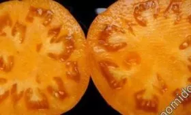В стадии технической спелости плоды светло-зеленые, а при полном созревании приобретают равномерный насыщенный оранжевый цвет. Мякоть очень плотная, мясистая и многокамерная. На изломе она сахарная, что визуально подтверждает высокое содержание сахаров. Семенных камер немного, а сами семена мелкие и их количество невелико.