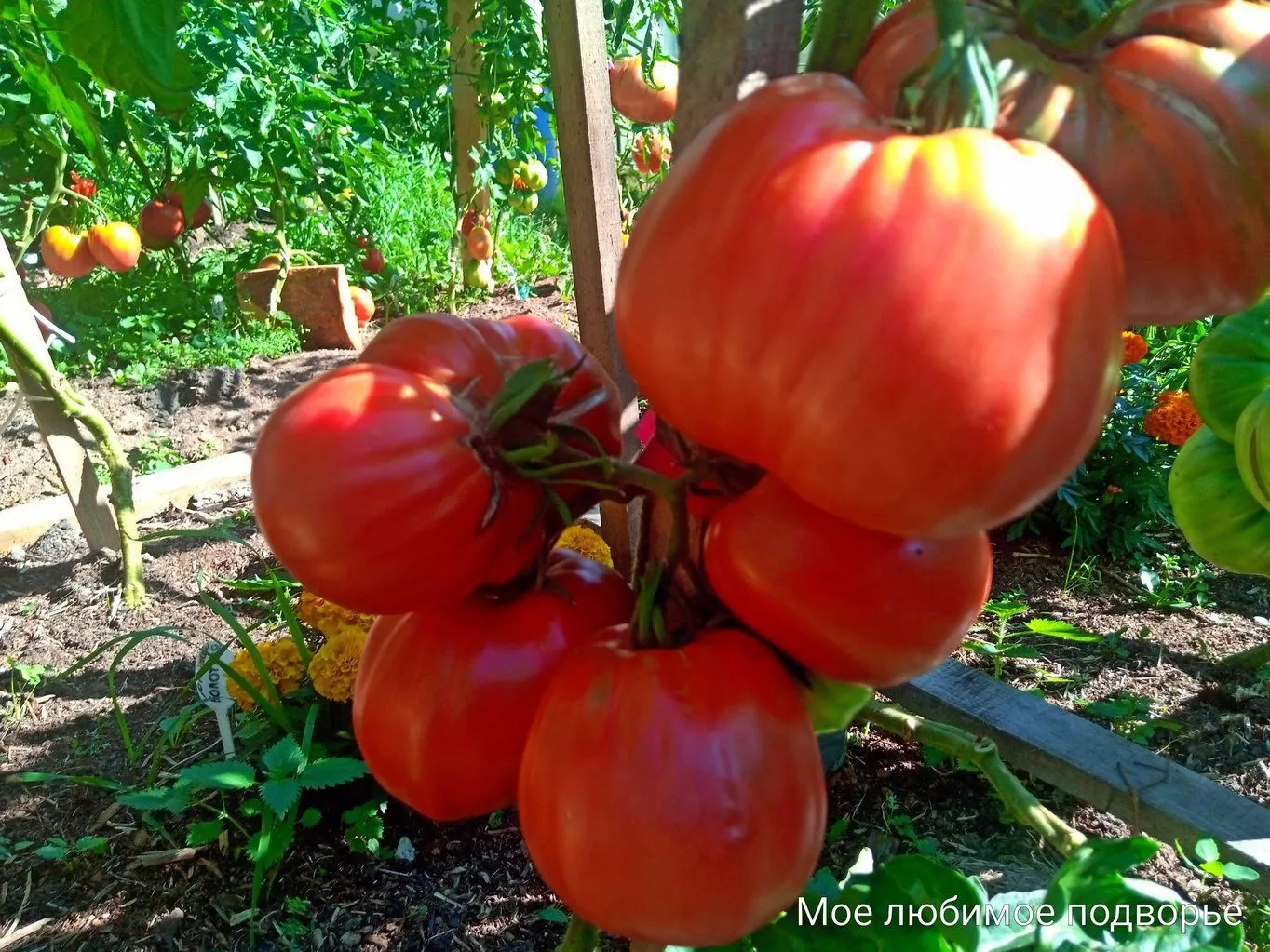 Однако из-за крупного размера и высокой массы (250-500 г) плоды на одной кисти могут созревать не одновременно. Рекомендуется снимать каждый томат по мере готовности, чтобы не перегружать плодоножку и дать возможность соседним налиться.