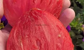 Мякоть у этих томатов многокамерная, очень плотная и мясистая, с высоким содержанием сухих веществ. Семенных камер немного, они небольшие. Такая структура напрямую влияет на вкус и назначение плодов.