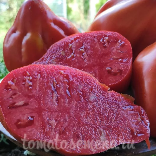 Мякоть у этих томатов многокамерная, очень плотная и мясистая, с высоким содержанием сухих веществ. Семенных камер немного, они небольшие. Такая структура напрямую влияет на вкус и назначение плодов.