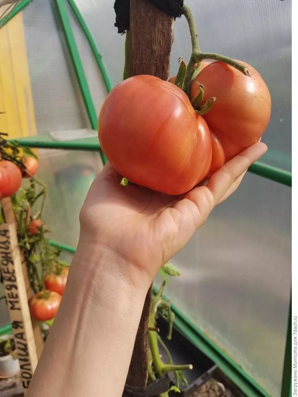 Основная специфика ухода проявляется после высадки. Из-за высокорослости (до 200 см) и тяжелых плодов обязательна надежная вертикальная подвязка к шпалере или кольям. Стебель фиксируют мягкой лентой по мере роста, а каждая тяжелая кисть с наливающимися плодами требует дополнительной поддержки, чтобы не обломилась.