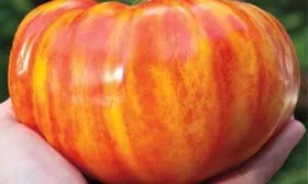 Главная особенность, давшая сорту название, — уникальная окраска плодов. Это не просто двухцветный помидор, а настоящая игра цвета, зависящая от условий выращивания. На красном фоне кожицы проступают яркие желтые разводы и полосы. Интенсивность красного цвета напрямую коррелирует с количеством полученного солнечного света: чем больше солнечных дней, тем насыщеннее и обширнее будет красный фон, а желтые полосы станут контрастнее. В пасмурное лето, в условиях загущенных посадок или при недостатке света в теплице плоды могут демонстрировать преобладание желтых и оранжевых тонов.