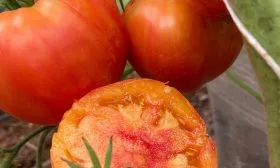 Однако из-за крупного размера и не самой плотной кожицы, характерной для многих биф-томатов, плоды могут растрескиваться при перепадах влажности или перезревании на ветке. Поэтому рекомендуется не передерживать их, собирая в момент полной спелости.