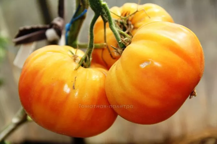 Именно плоды являются главной отличительной чертой этого сорта. Их плоскокруглая форма часто дополняется выраженной ребристостью в области плодоножки, что особенно заметно у самых крупных экземпляров. Весовая категория от 200 до 400 граммов делает их типичными представителями биф-томатов, а первые завязи на нижних кистях нередко перерастают и этот показатель.