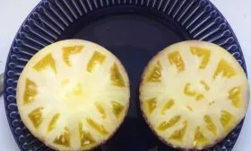 Вкус наиболее ярко выражен у полностью созревших на кусте томатов, когда они приобретают свой фирменный молочно-белый цвет с фиолетовым румянцем. Дозаривание (дозревание в помещении) может немного снизить сахаристость и фруктовые нотки.