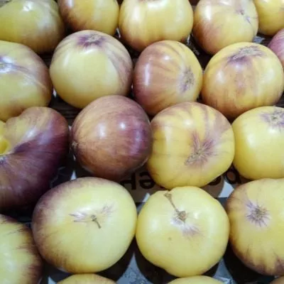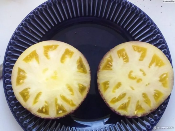 Вкус наиболее ярко выражен у полностью созревших на кусте томатов, когда они приобретают свой фирменный молочно-белый цвет с фиолетовым румянцем. Дозаривание (дозревание в помещении) может немного снизить сахаристость и фруктовые нотки.