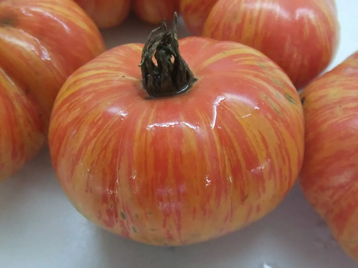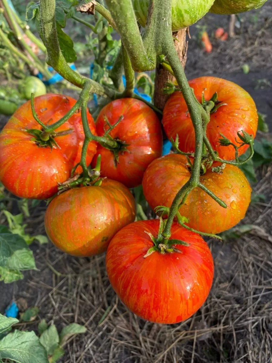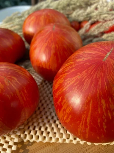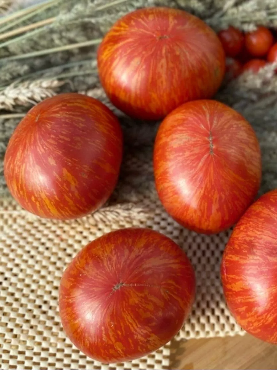 Именно сочетание впечатляющего размера, уникальной полосатой расцветки и нежной текстуры делает эти томаты идеальными для свежего потребления. Они великолепно смотрятся в нарезке, салатах и бутербродах, полностью раскрывая свою эстетическую и вкусовую ценность.
