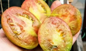 Мякоть сочная, мясистая. Вкус, как отмечено в характеристиках, отличается выраженной сладостью с приятными фруктовыми нотками, что делает эти томаты особенно ценными для свежего потребления.