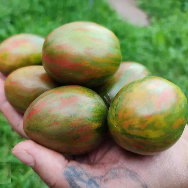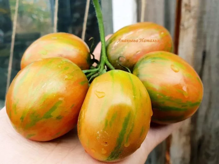 Это не просто декоративный эффект, а особенность сорта, которая требует внимания при сборе урожая — плоды снимают выборочно, по мере достижения ими полной окраски. Форма плодов овальная, классическая «сливка», что часто ассоциируется с хорошей лежкостью и устойчивостью к растрескиванию. Масса в 100-150 грамм является стандартной, а увеличение до 200 грамм, как правило, результат оптимального питания и нормирования количества завязей.
