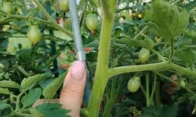 - По мере роста подвязывайте не только стебель, но и тяжелые кисти. Это предотвратит их обламывание в месте крепления к стеблю и улучшит освещенность плодов.