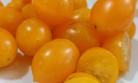 В фазе полной зрелости томаты приобретают теплый желто-оранжевый, почти янтарный цвет. Плотная, но не жесткая кожица надежно защищает их от растрескивания даже при перепадах влажности, что продлевает период сохранности на кусте и после сбора.