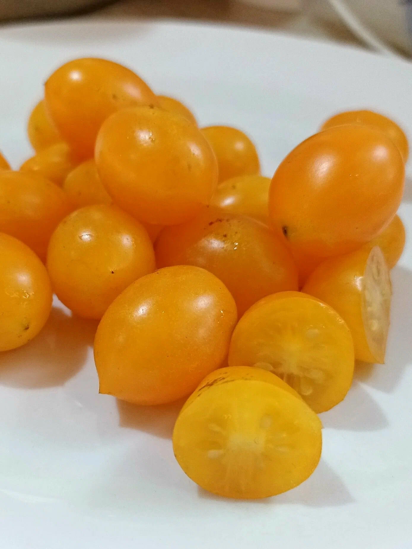 В фазе полной зрелости томаты приобретают теплый желто-оранжевый, почти янтарный цвет. Плотная, но не жесткая кожица надежно защищает их от растрескивания даже при перепадах влажности, что продлевает период сохранности на кусте и после сбора.