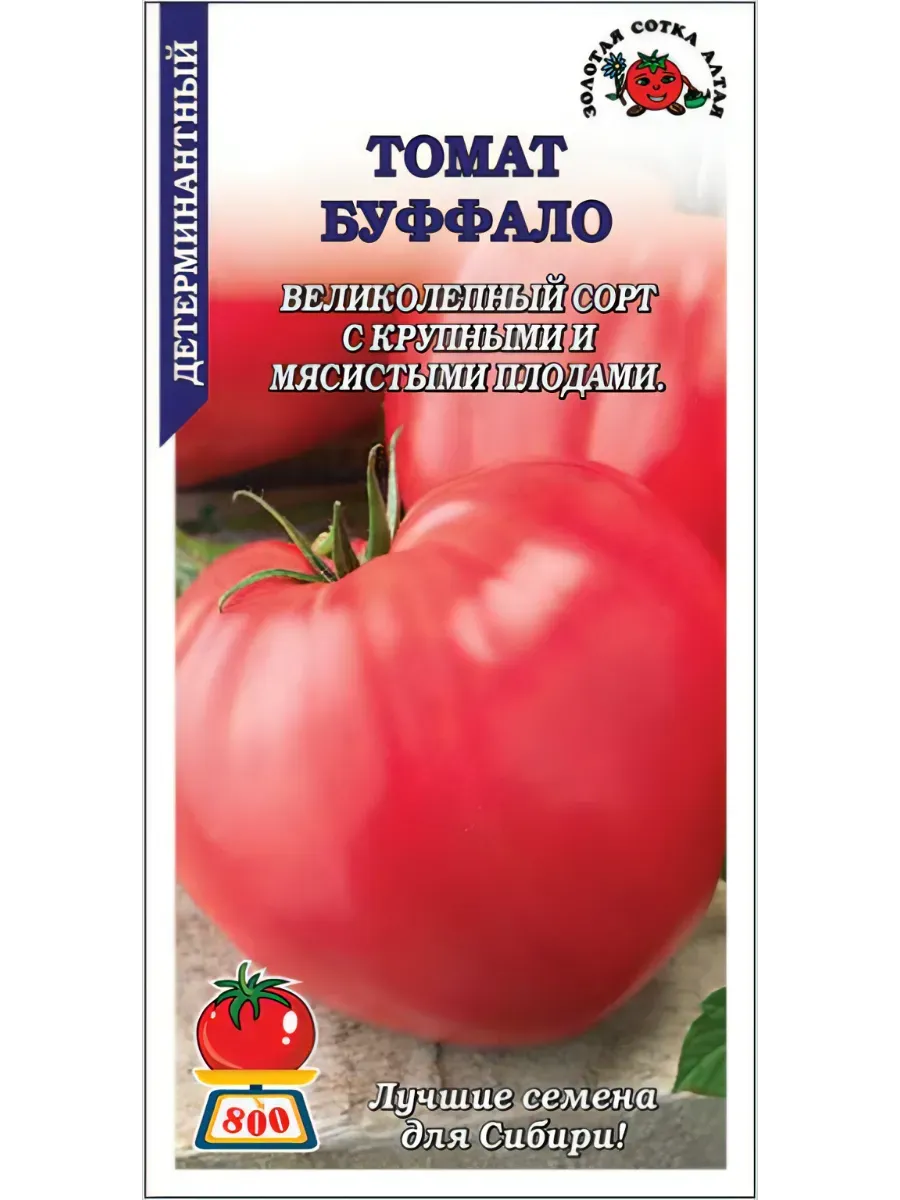 Томат «Буффало» — это надёжный среднеранний сорт, созданный специально для непростого климата. Его компактные детерминантные кусты удивляют крупными, до 800 граммов, сердцевидными плодами с отличным вкусом. Идеален для свежих салатов, сока и консервации, а его устойчивость делает выращивание в открытом грунте и теплицах Сибири предсказуемым и успешным.