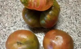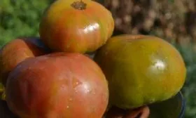 В фазе технической спелости томаты имеют зеленый цвет с характерным темно-зеленым пятном у плодоножки. По мере созревания основной фон меняется на оливково-зеленый, а на его поверхности начинают проявляться размытые пятна и полосы розового и коричневого оттенков. Интенсивность и рисунок этих пятен уникальны для каждого плода, что делает урожай особенно живописным.