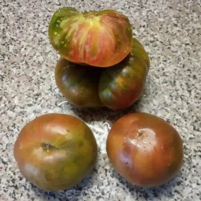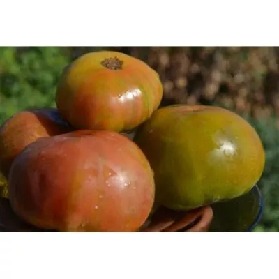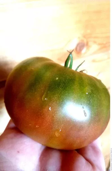 В фазе технической спелости томаты имеют зеленый цвет с характерным темно-зеленым пятном у плодоножки. По мере созревания основной фон меняется на оливково-зеленый, а на его поверхности начинают проявляться размытые пятна и полосы розового и коричневого оттенков. Интенсивность и рисунок этих пятен уникальны для каждого плода, что делает урожай особенно живописным.