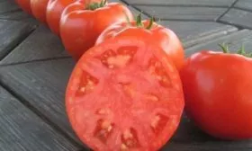 При полном созревании томаты наливаются равномерным, насыщенным красным цветом. Мякоть отличается высокой плотностью и мясистостью, но при этом остается сочной, не приобретая излишней твердости. Число семенных камер и количество семян невелико.