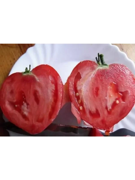 На разрезе сразу видна мясистая, очень плотная и малосемянная мякоть. Она имеет сахаристый, зернистый излом, характерный для лучших сортов салатного типа. Такая структура с высоким содержанием сухих веществ не только определяет превосходный вкус в свежем виде, но и делает плоды исключительно подходящими для получения густого сока, пасты или кетчупа, так как при переработке дает минимальное количество отходов.