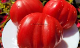 | Назначение плодов | Для свежего потребления, сока, пасты, кетчупа | Мясистая, малосемянная мякоть с высоким содержанием сухих веществ дает очень густой, насыщенный сок и пасту. Крупный размер исключает цельноплодное консервирование. |