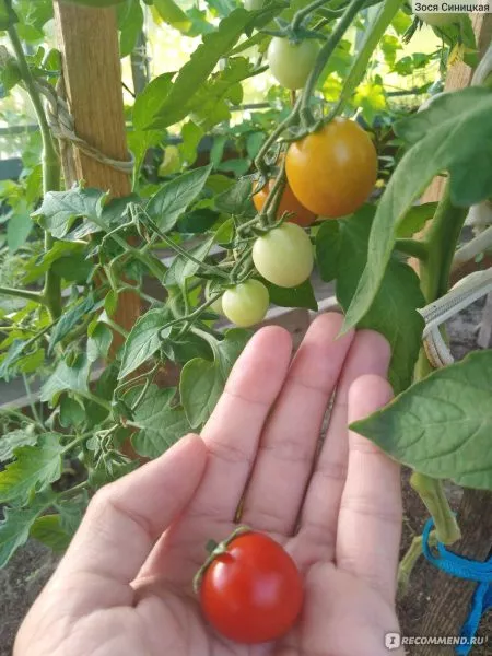Плоды этого сорта представляют собой классический пример черри-томатов с выверенными параметрами. Их главная отличительная черта — стабильность. Каждый помидор имеет массу около 10 граммов, что обеспечивает равномерное созревание в кисти и удобство при сборе и переработке.