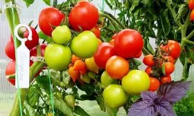 | Формирование и подвязка | Через 2 недели после высадки | Подвяжите стебли к опоре, даже при низком росте. Под тяжестью плодов массой 135-140 граммов куст может заваливаться. Ведут в 2-3 стебля. |