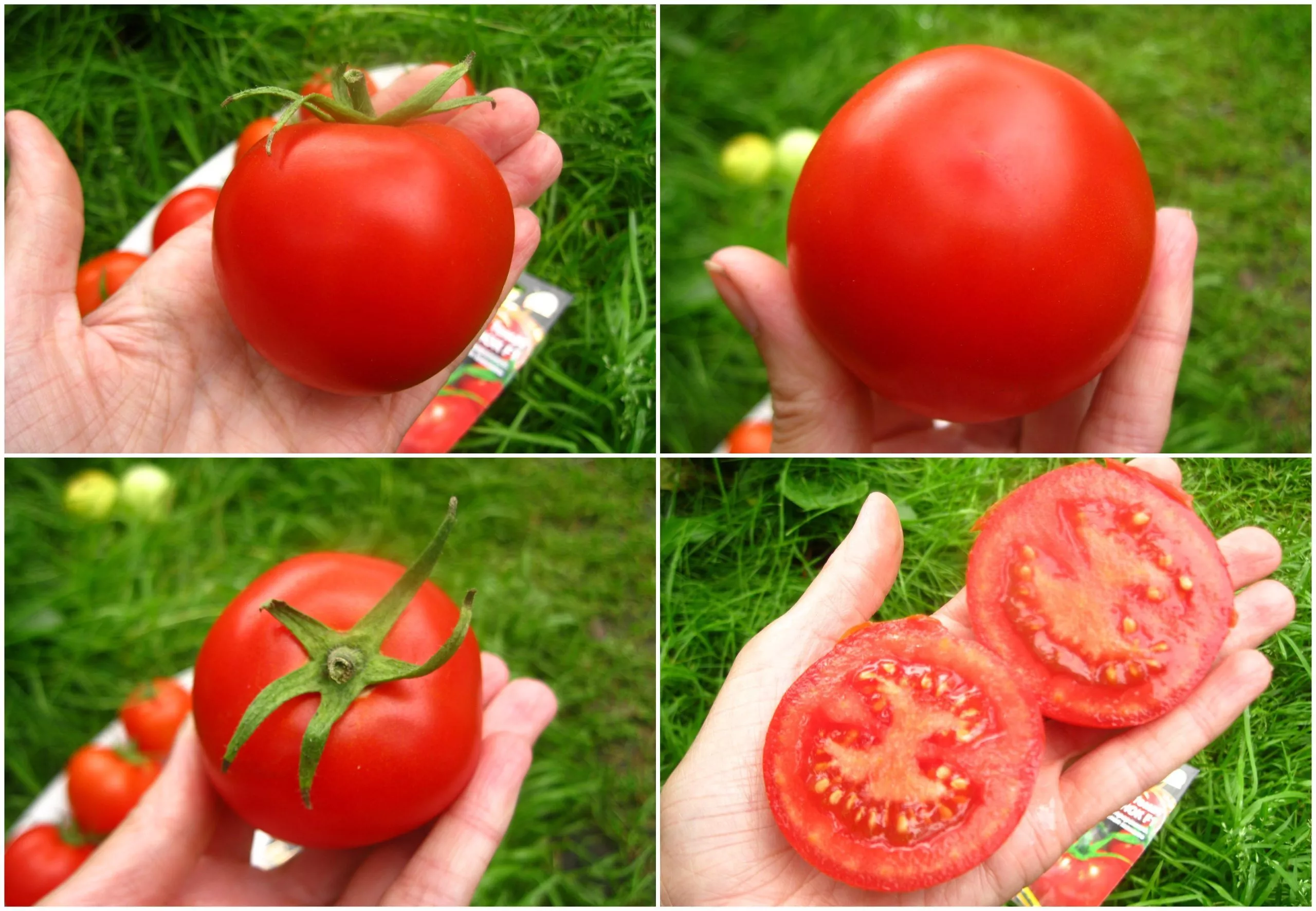 Плоды отличаются выровненной, классической формой — они плоскоокруглые со слабо выраженной ребристостью. Средняя масса одного томата находится в диапазоне 135-140 граммов. В стадии технической, а затем и полной спелости они приобретают интенсивный и равномерный красный окрас без зеленого пятна у плодоножки.