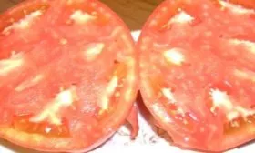 - Консервирование кусочками и в собственном соку. Для цельноплодного консервирования томаты не подходят из-за крупного размера. Однако они отлично показывают себя в заготовках, где требуются дольки: зимние салаты-ассорти, томаты в собственном соку, лечо.